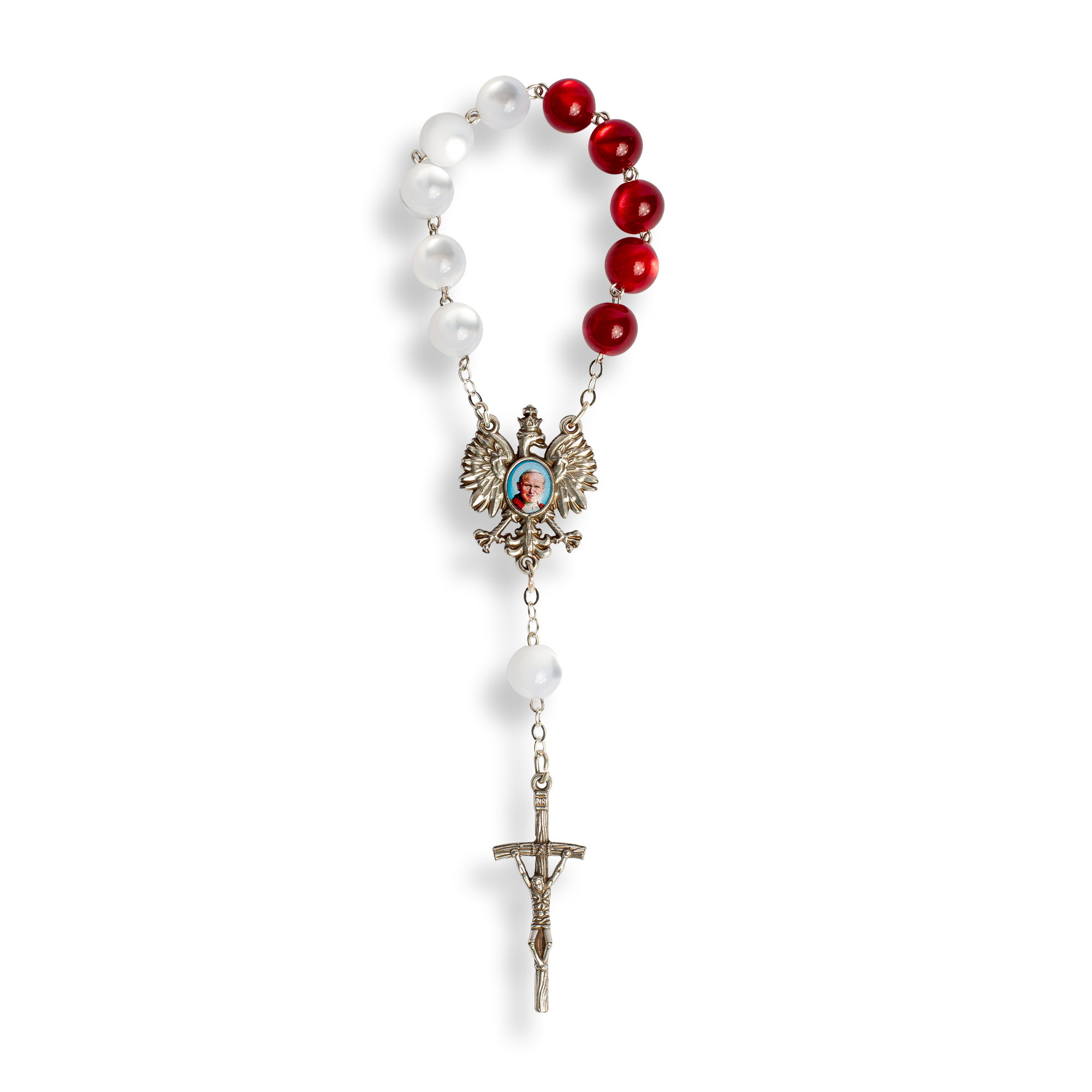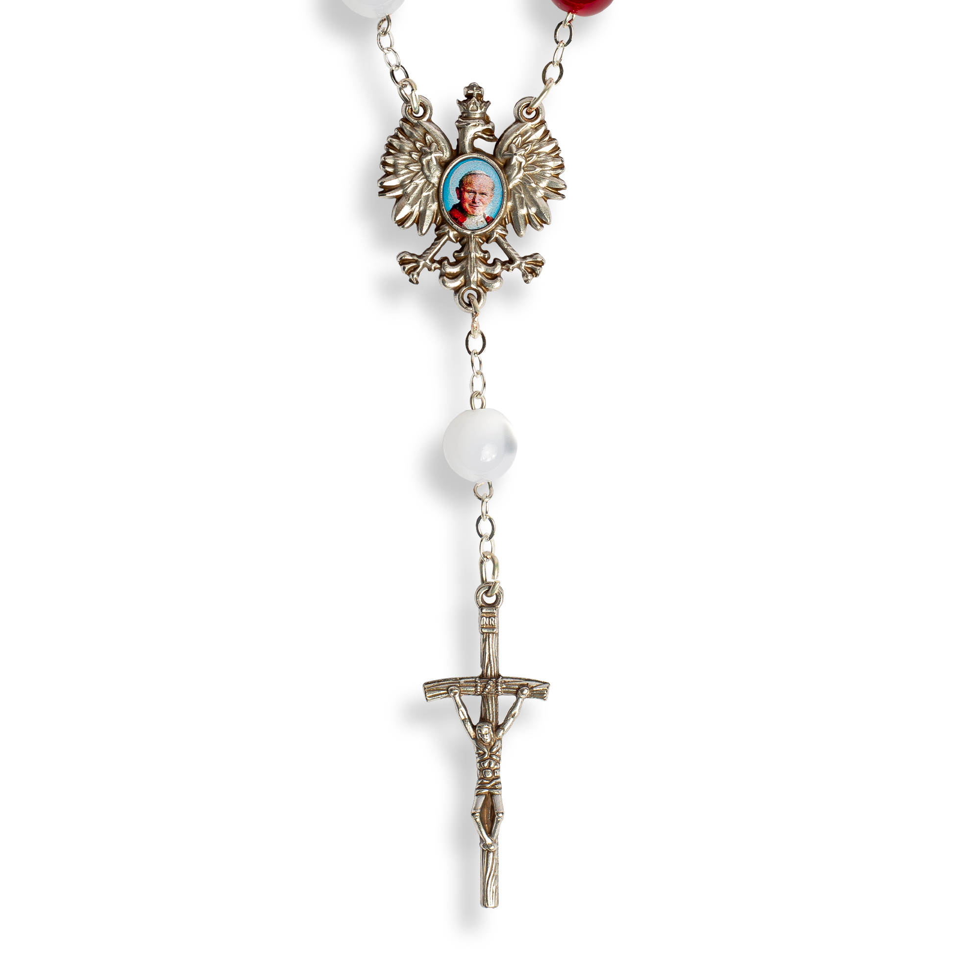 Patriotyczny różaniec z orzełkiem i św. Janem Pawłem II