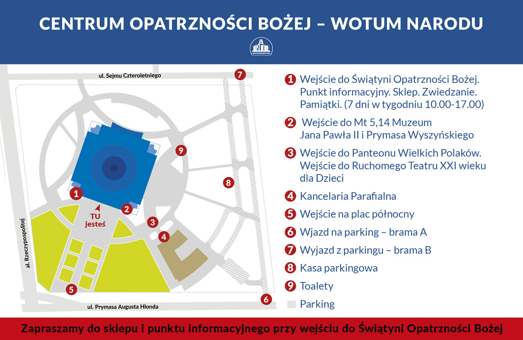 Więcej informacji o powstającym Sanktuarium Opatrzności Bożej i jego zwiedzaniu: www.centrumopatrznosci.pl